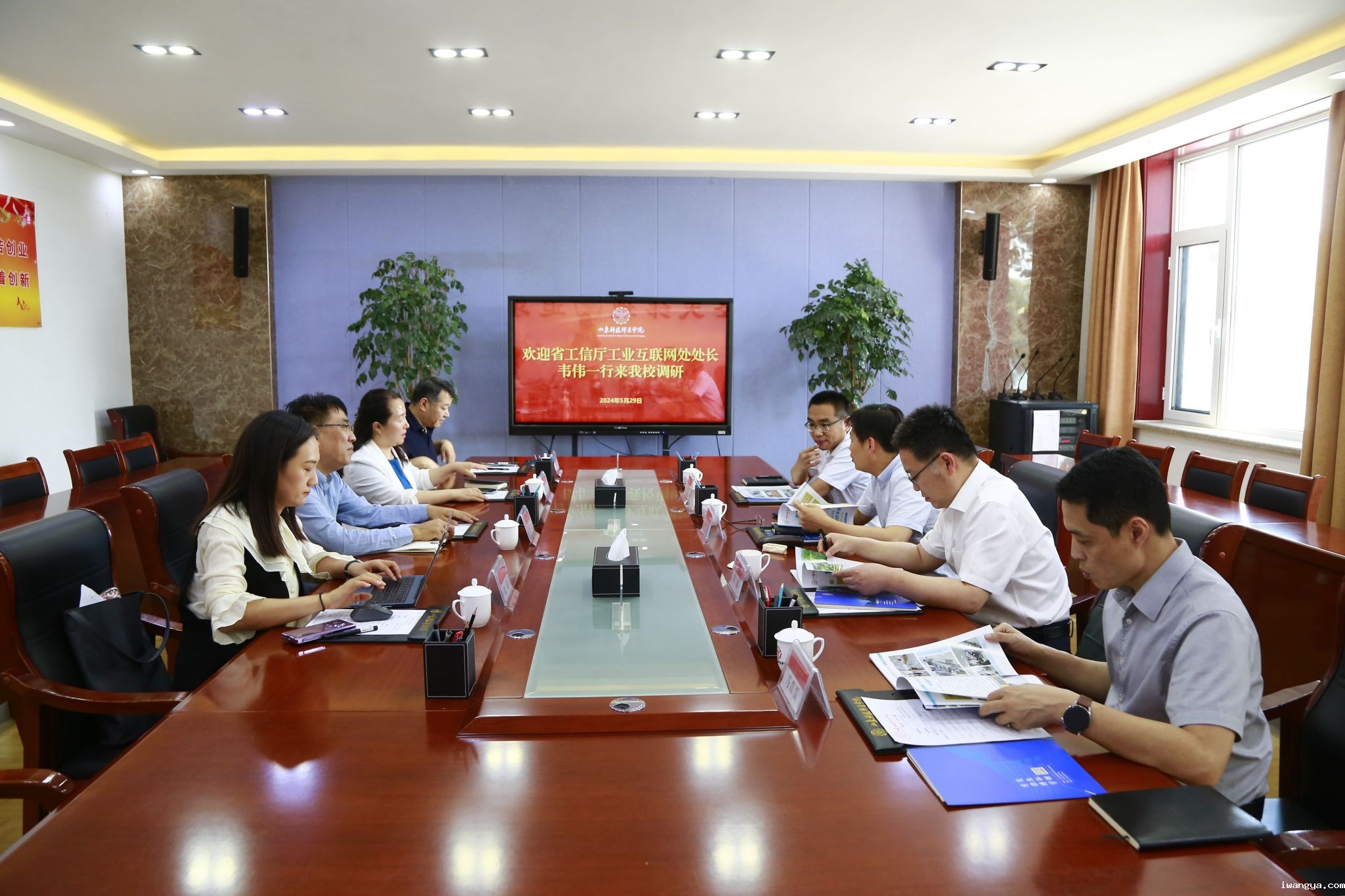 5月29日下午,山东省工业和信息化厅工业互联网处处长韦伟在潍坊市工业和信息化局副局长刘斌陪同下一行四人来我校调研指导。学校党委书记郑德前会见来访客人,党委委员、副校长董传民陪同座谈调研。信息工程系、继续教育与培训部相关人员参加活动。