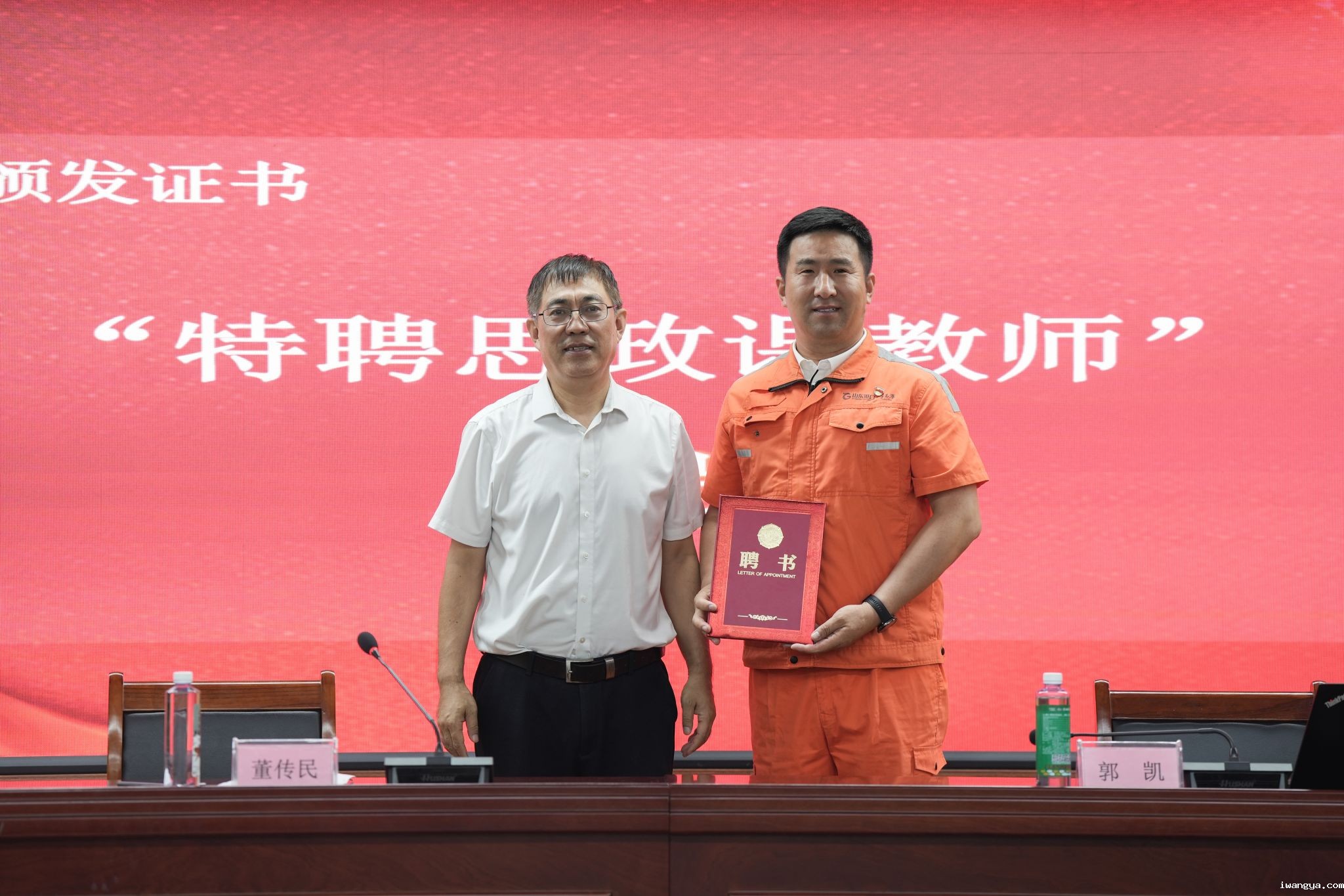 6月11日,青岛市首位全省港口行业首席技师、央视《挑战不可能》明星工匠郭凯受邀来我校作专题报告,学校党委委员、副校长董传民主持报告会,并为郭凯大师颁发必威app登录官网入口下载手机版安卓“特聘思政课教师”聘书。现场座无虚席,气氛热烈,共同见证了一场关于坚守与突破的精神盛宴。