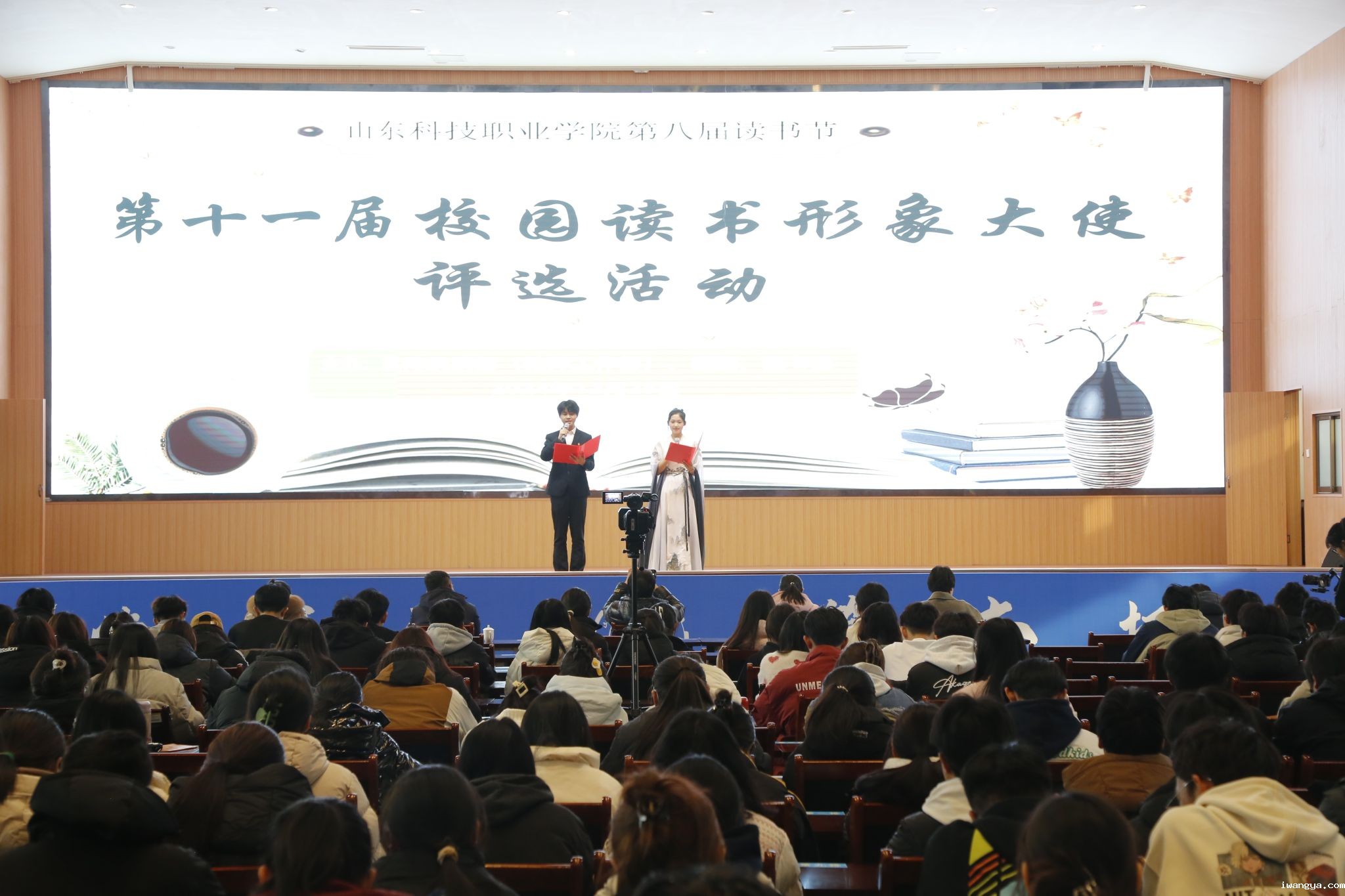 为进一步营造“书香必威网站主页官网入口”阅读氛围,树立全民阅读的先进典型,发挥示范引领作用,引导全校师生形成“多读书、读好书、善读书”的阅读风尚,12月25日下午,学校在南院报告厅成功举办“以书为径,向新而行”第十一届“校园读书形象大使”评选活动。各系部学生代表400余人观赛。