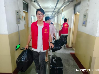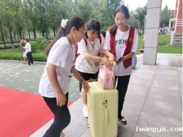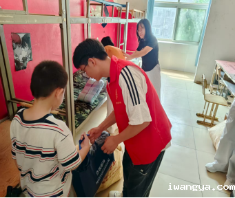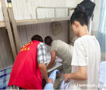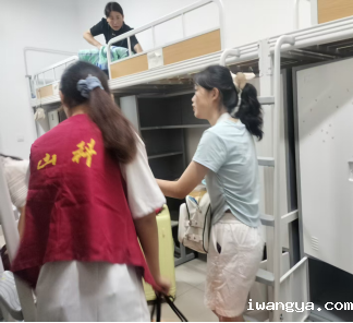 志愿者学长学姐们帮助新生携带行李来到宿舍楼,帮助新生整理生活物品。