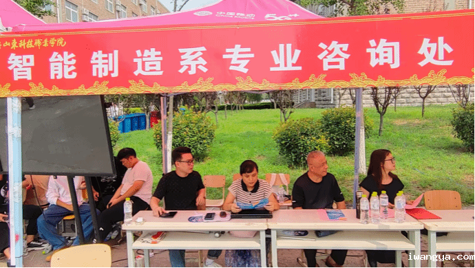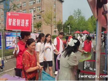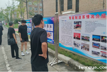 家长在 “智能制造系情况介绍”“班主任风采展示”“辅导员风采展示”的系部展牌前细细研读。专业咨询处的老师也随时准备为新生解答专业问题。